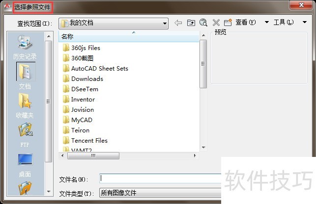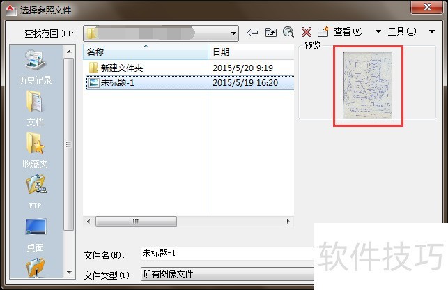 3、 点击下拉菜单里的【光栅图像参照】选项,弹出选择参照文件窗口,如下图所示。