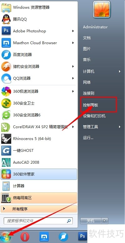 1、 打开电脑左下角的“开始”,点击“控制面板”
