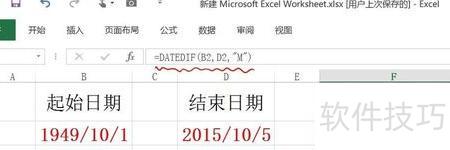 该函数语法为:=DATEDIF(起始日期,终止日期,参数),其中第三个参数可设定不同选项,用于返回两个日期之间的天数、月数或年数。