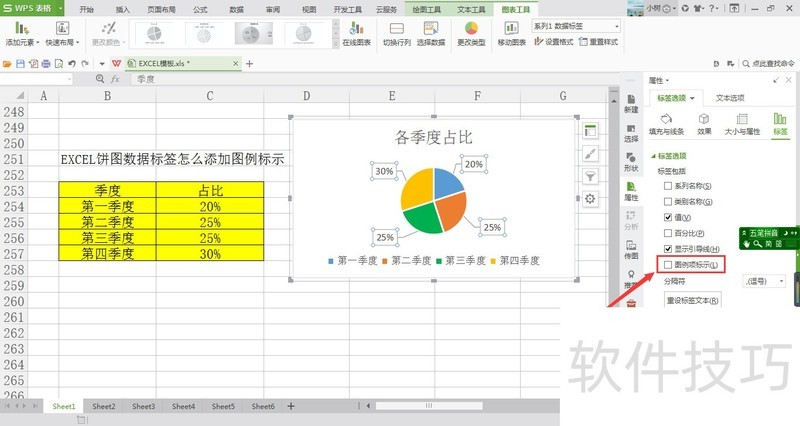 4、 在页面右侧的标签属性工具栏中,勾选“图例项标示”选项。