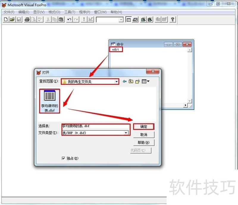 3、 特别牢记只有数值型可以适用算数计算。END1打开需要输入数据的表【李均律师的表】(1)使用命令“edit”(回车);(2)选择需要打开的表的位置→选择需要打开的表→单击【确定】打开;