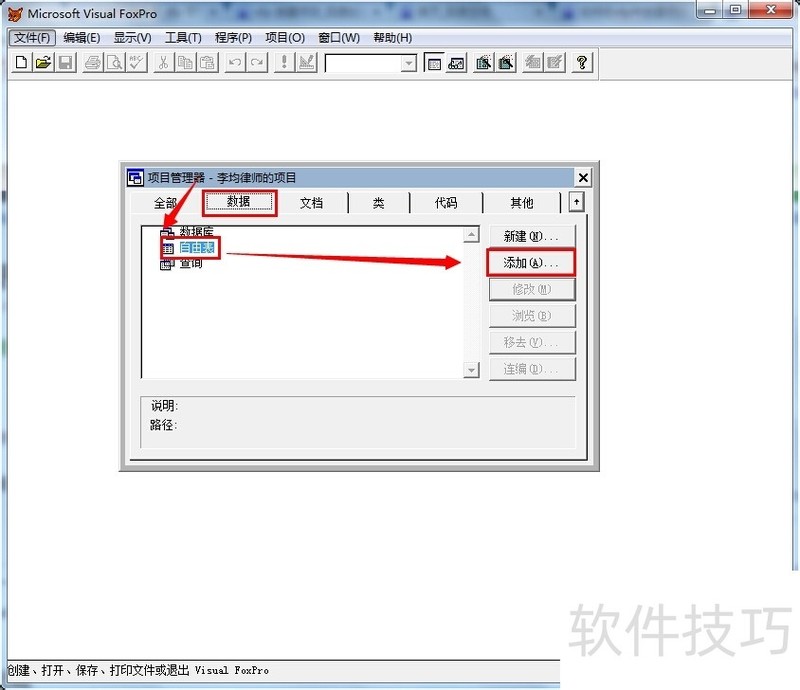 怎么在vfp的项目中添加表?