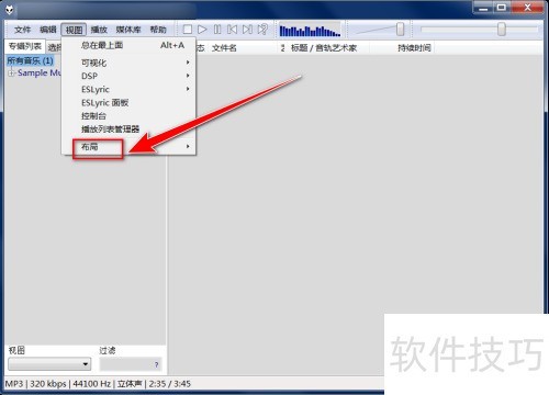 1、 第一步:在foobar2000播放器中,点击菜单中的“视图”。