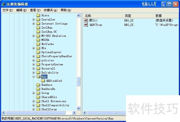 8、 依次定位到:HKEY_LOCAL_MACHINESOFTWAREMicrosoftWindowsCurrentVersionRun