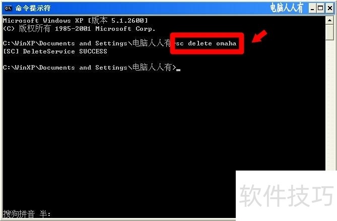 9、 清理这些无用的服务有两个方法,办法一,用sc.exe这个Windows命令:开始→运行→cmd.exe打开命令提示符窗口,命令格式:sc delete “服务名” (如果服务名中间有空格,就需要前后加引号)如针对上面的: sc delete omaha (回车执行命令)