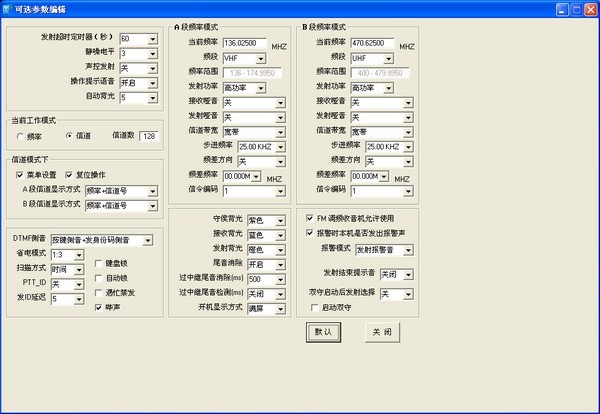 这款软件是宝锋电子UV-5R系列对讲机的写频工具,可以设置对讲机的接收和发射频率、QT/DQT编码解码以及发射功率及宽/窄带等数据。支持批量编辑信道,设置其他功能如静噪级别、发射超时、扫描/语音开关等。此外,该软件还具有省电功能及高电/低禁止发射功能。