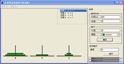 简单的逻辑游戏。我们的目标是将所有盘子从左边的位置移动到右边的位置,中间的位置是做周转用的。您只能把小的盘子放到大的盘子上面,反之则不能。这个游戏可以训练你的思维,使你更聪明。