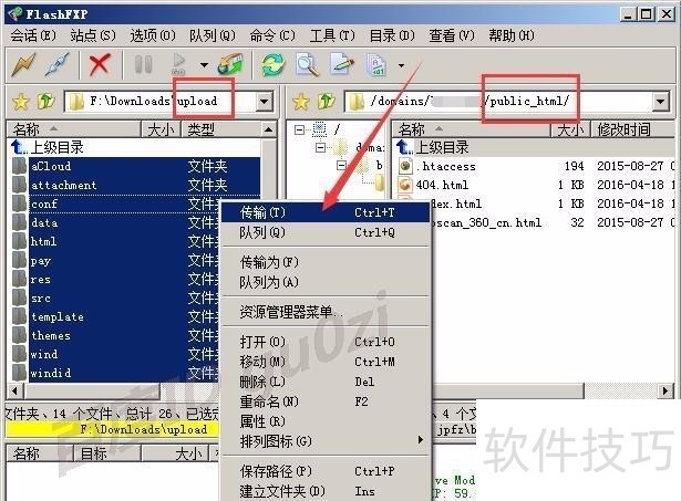 3、 在下载的安装包解压缩后,打开FTP客户端软件,全集upload目录中的文件,上传到网站的根目录,