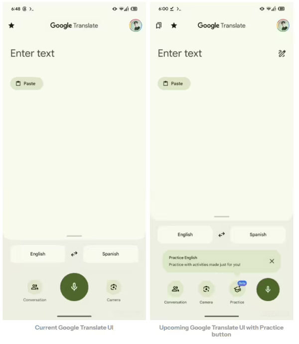 入口位置:谷歌翻译的主页将新增一个“练习(Beta)”按钮,用户可以通过点击该按钮进入练习模式。