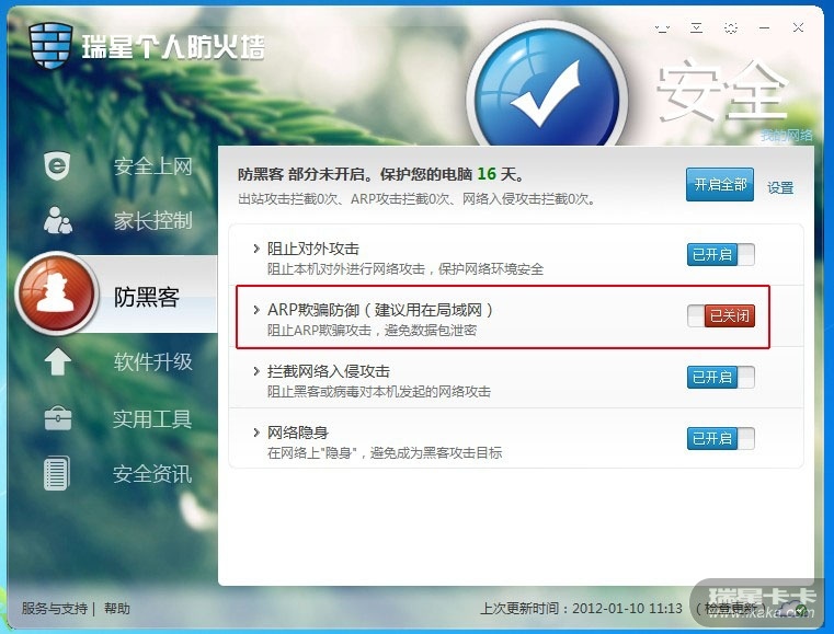 官方软件分类:防火墙大小:6.78 MB时间:2026-02-26软件介绍:BlackICE PC Server软件在九九年获得了 PC Magazine的技术卓越大奖,专家对它的评语是:”对于没有防火墙 立即下载4.瑞星个人防火墙2012 永久免费
