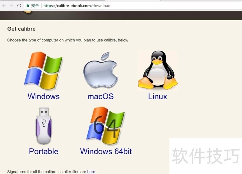 1、 第一步,登陆官网“https://calibre-ebook.com/download”,这里面有针对各种操作系统的安装软件。