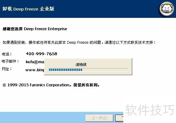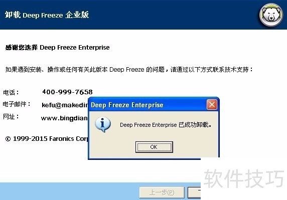 5、 点击卸载,会出现正在卸载Deep Freeze Standard的进度条,等待完成后会自动跳转到软件工作站安装的页面,等待安装完成后,软件就被卸载了。6再打开电脑就会发现软件已经被全部卸载完全了。以上就是冰点还原精灵标准版的卸载过程。END1点击冰点还原安装驱动(就是之前的冰点安装图标,所以在冰点完成安装之后,千万不要删除掉这个图标哦!)
