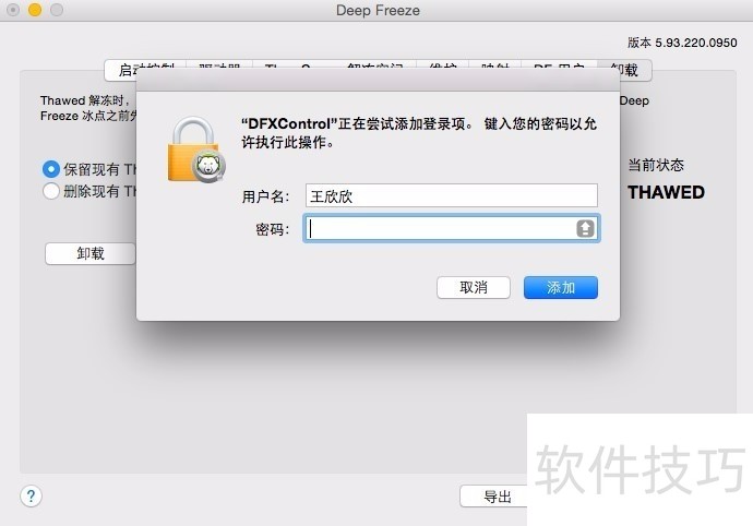 7、 按住SHIFT键,点击冰点图标,在弹出的密码框中输入替换掉的密码1234,确定后如下图: