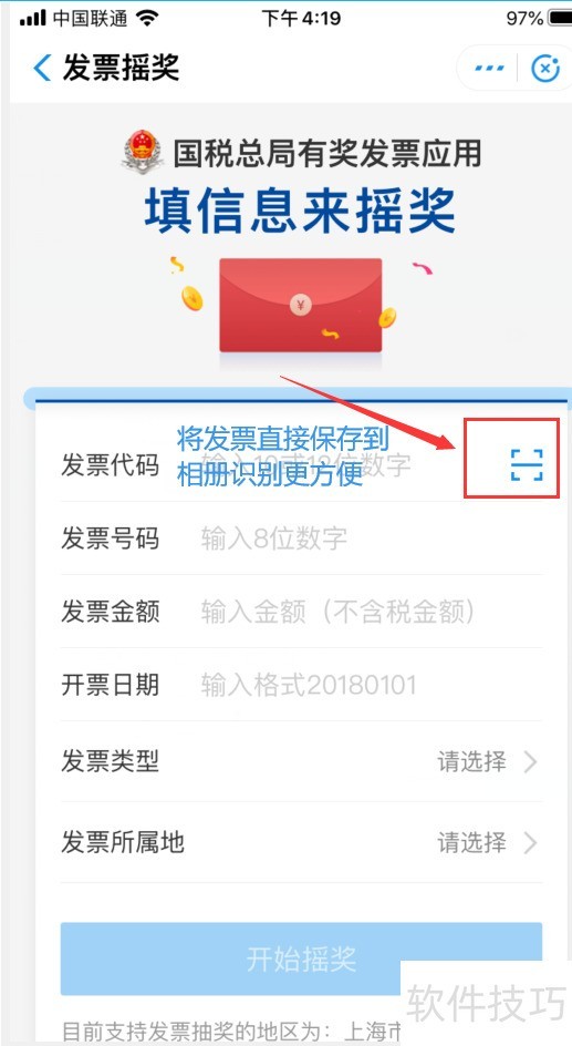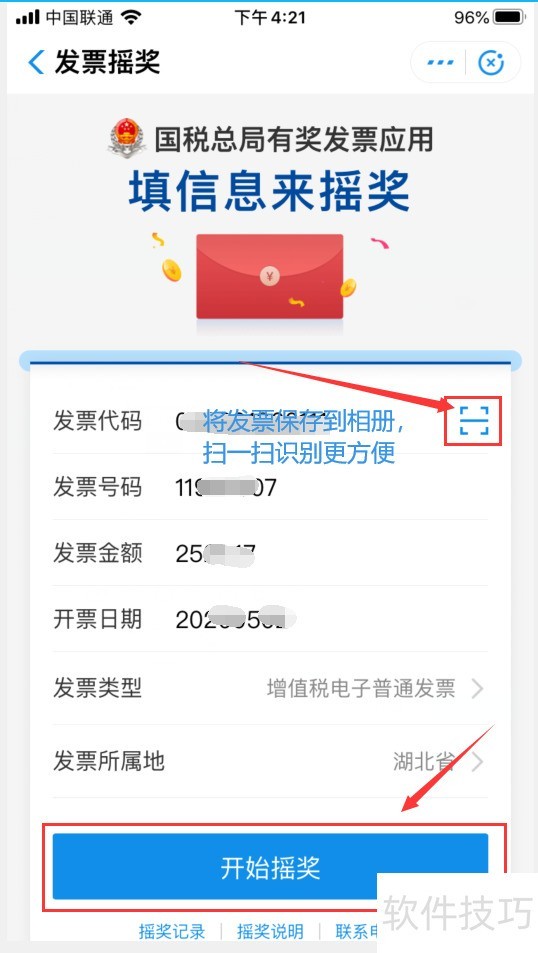 2、 进入【发票管家】页面,点击【发票摇奖】,如下图: