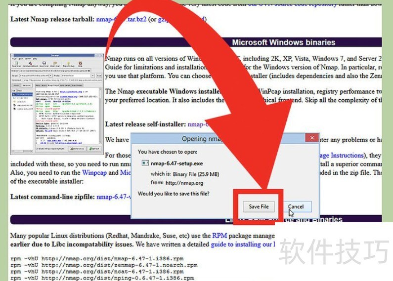 1、 下载Nmap安装程序。 可以从开发者的网站上免费找到。 强烈建议您直接从开发人员下载,以避免任何潜在的病毒或伪造文件。 下载Nmap安装程序包括Zenmap,它是Nmap的图形界面,它使新手可以轻松进行扫描而无需学习命令行。