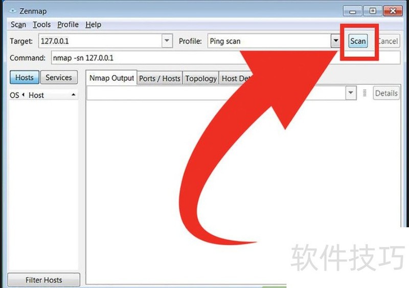 6、 单击扫描开始扫描。 扫描的活动结果将显示在“ Nmap输出”选项卡中。 扫描所需的时间取决于您选择的扫描配置文件,到目标的物理距离以及目标的网络配置。