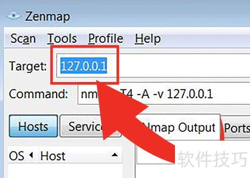 4、 输入要扫描的目标。 Zenmap程序使扫描过程相当简单。 运行扫描的第一步是选择目标。 您可以输入域(example.com),IP地址(127.0.0.1),网络(192.168.1.0/24)或它们的组合。