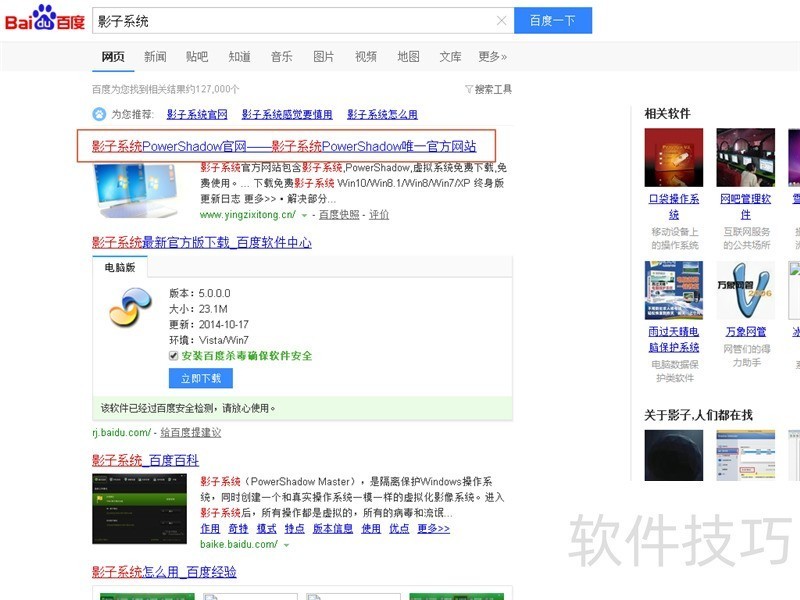 1、 网络搜影子系统选第一个官网进行下载。