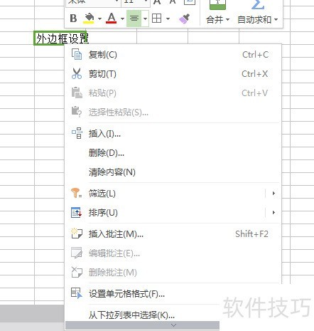 2、 右键单元格,进入右键菜单,如图