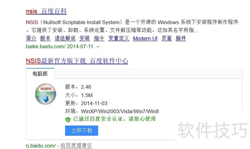 1、 网络搜索 “NSIS”下载,按照安装向导进行安装