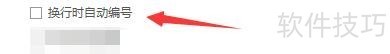 5、 在“功能设置”窗口中,将“换行时自动编号”勾选上