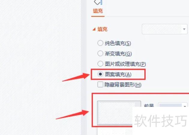 设置前景色与背景色,选取浅色上对角线图案,操作所示。