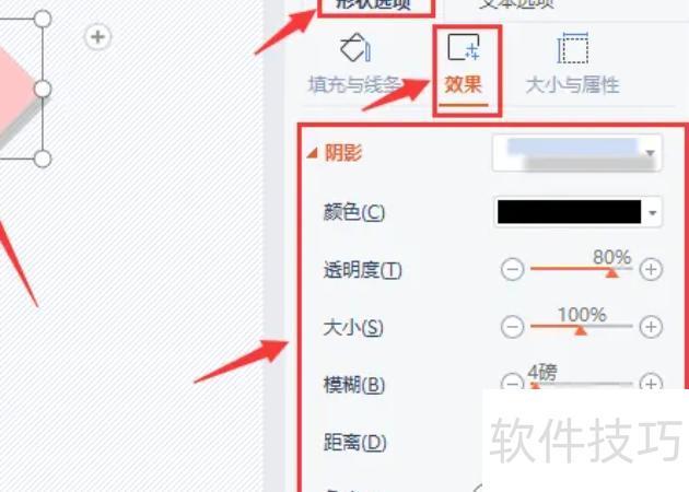 接下来,在左上角插入一个五边形,通过中的功能添加阴影,并按需调整相关参数,具体效果所示。