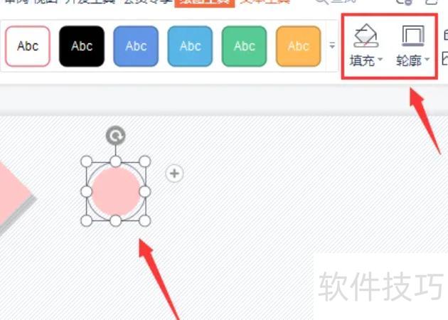 接下来,插入两个圆形,内小圆填充粉色,外大圆边框设为紫色,效果所示。