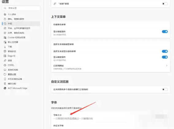 在外观设置中,向下滚动页面,找到 【字体大小】 选项。