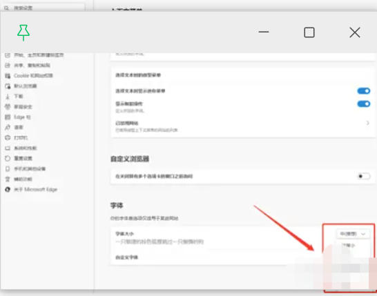 点击下拉菜单,选择适合的字体大小(通常提供 5种选项:最小、小、中(默认)、大、最大)。选择后,浏览器会立即应用新字体大小,无需额外保存。可通过浏览网页实时查看效果,如不满意可返回调整。