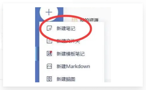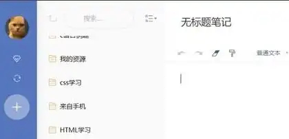 2、点击软件左侧的“+”号新建笔记。