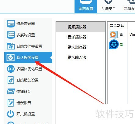 2、 打开默认程序设置页面打开软媒魔方的设置大师,点击默认程序设置。