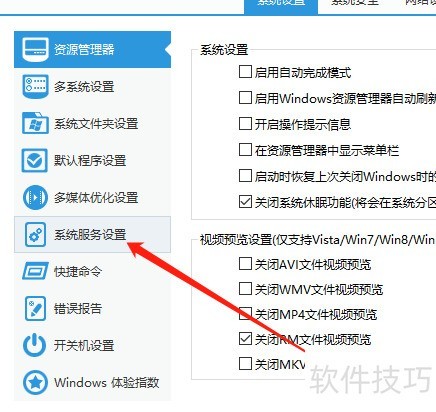 2、 打开系统服务设置页面打开软媒魔方的设置大师,点击系统服务设置。