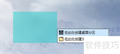 2、 然后按住鼠标右键并拖动,然后选择在此处创建桌面分区