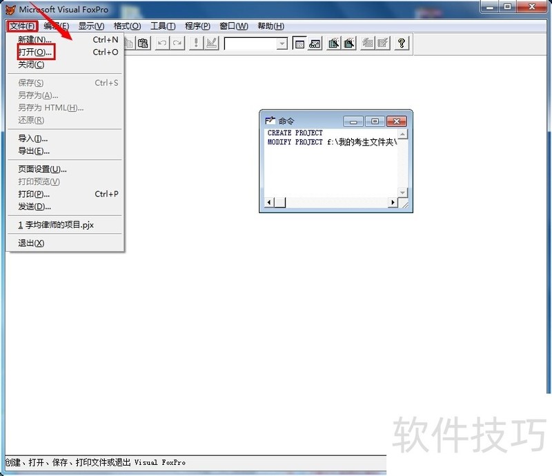 1、 打开vfp(即:Visual FoxPro 6.0中文版,下同)