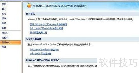 1、 第一步:首先,打开office2007 Word,选信任中心,信任中心设置(如图所示)。