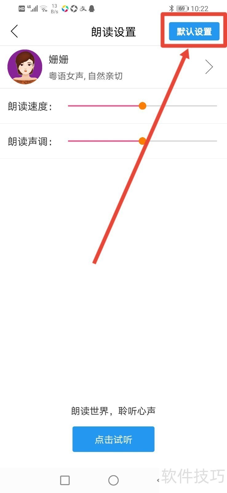 4、 进入朗读设置,然后点击右边的箭头。