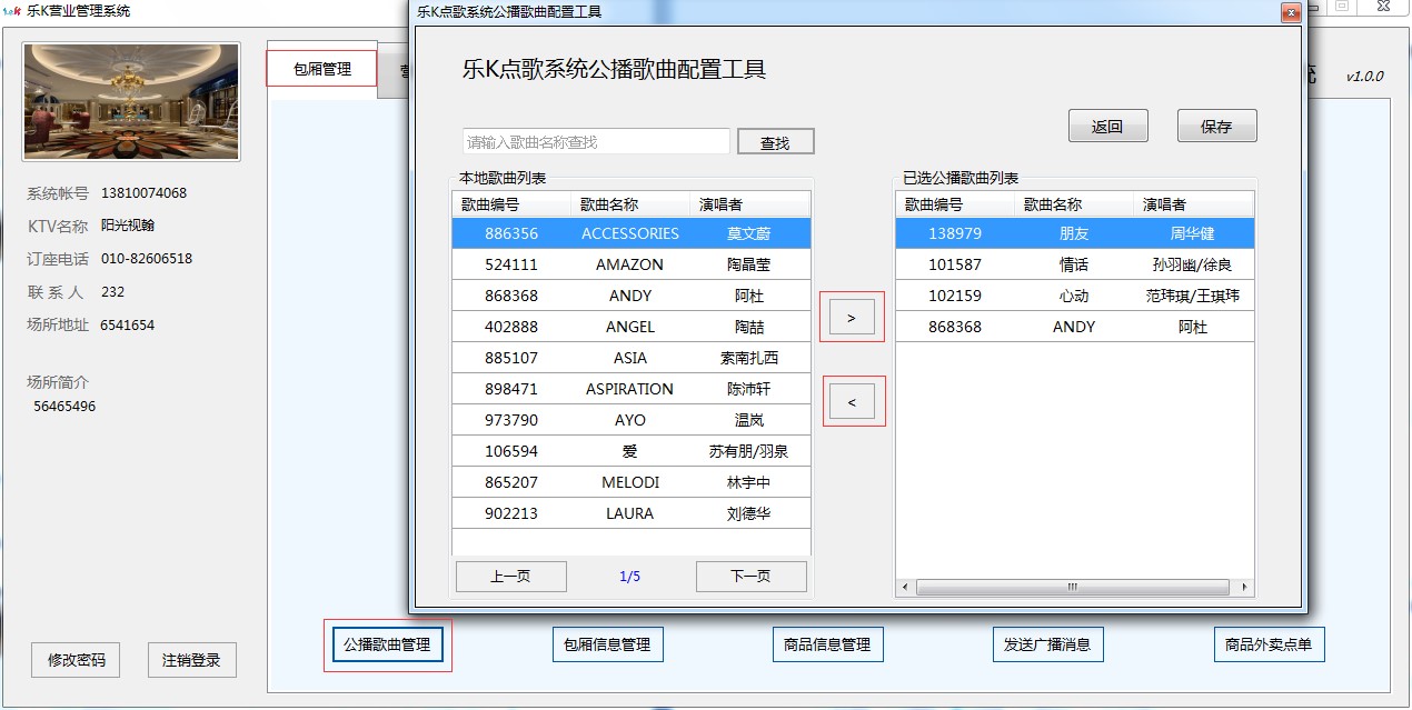 乐K是一款适用于中小型KTV场所的点歌系统,由点歌软件和前台管理系统两部分组成。该系统基于Windows电脑平台,采取自由传播的方式,用户可以免费下载、安装和使用。点歌软件提供了丰富的歌曲资源和互动功能,使顾客能够轻松选择自己喜欢的歌曲,并与朋友进行互动。同时,前台管理系统负责管理顾客信息、订单记录和财务结算等业务。这套系统不仅方便了KTV场所的运营,也提升了顾客体验。