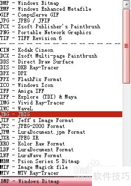 4、 在转换格式中选择需要转换的格式,可以看到这里的选项非常的丰富,可以说是所有图片格式应有尽有。这里选择BMP格式。