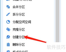 1、 点击创建分区选择硬盘后,点击创建分区。