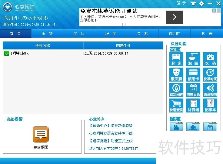 心意闹钟:多功能的免费提醒软件心意闹钟是一款永久免费的绿色桌面电脑闹钟软件。它集日程提醒与管理于一身,功能多样。想知道它怎么安装、设置以及使用吗?下面为你详细介绍。