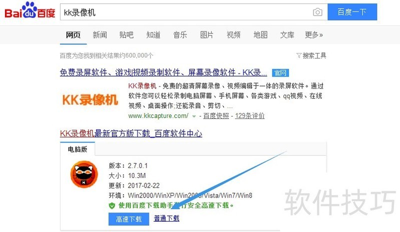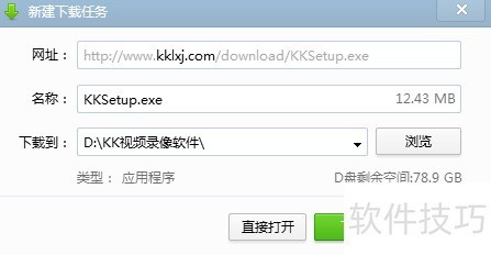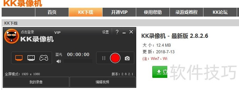 1、 在网络搜索‘KK录像机’,在网络软件中心找到KK录像机,点击下载,将其客户端下载下来。