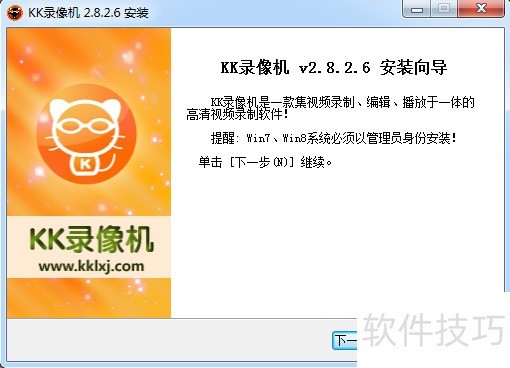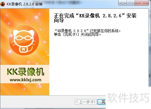 2、 按照操作步骤进行安装,安装完成后双击左面"KK录像机"图标,打开录像机
