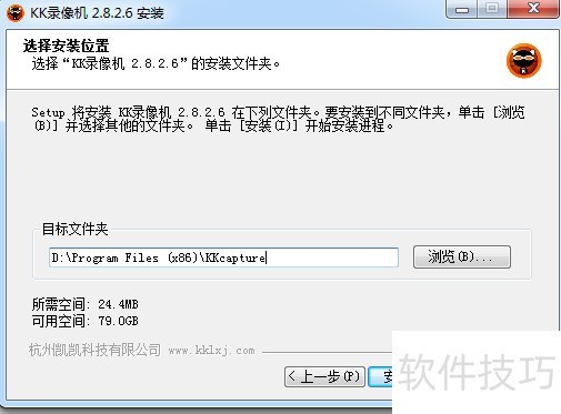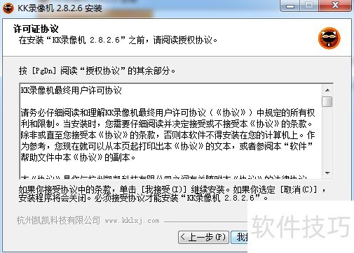 9、 选择我接受,进入kk录像机安装位置选择页面: