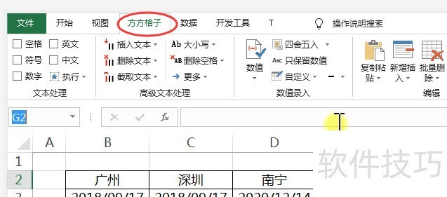 2、 单击【方方格子】选项卡