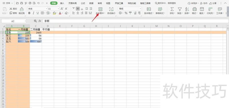 4、 点击合并居中