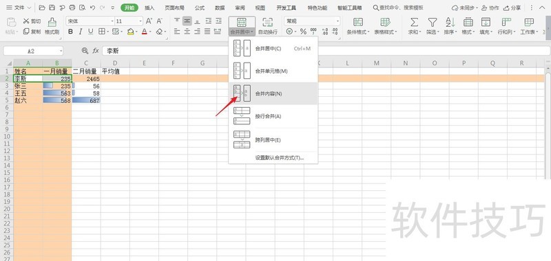 5、 选择内容合并