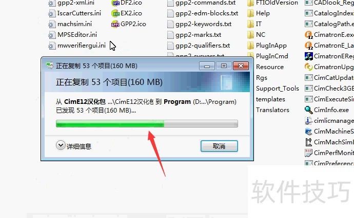 4、 把步骤2复制的文件粘贴到cimatronE12系统文件中进行替换;5由于要替换的文件较多,其运行的过程如下图;
