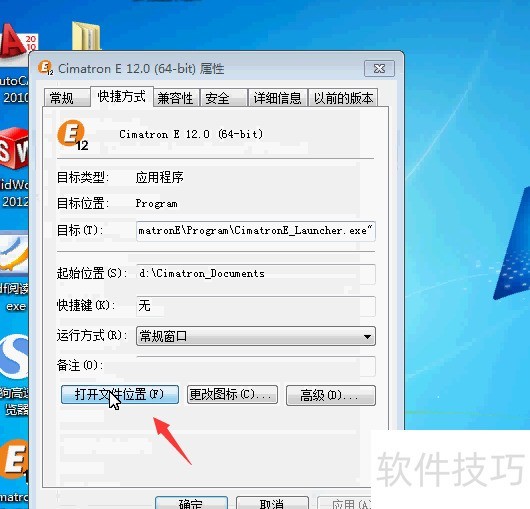 3、 通过在桌面cimatron E12启动图标上右键属性,找到其启动路径;