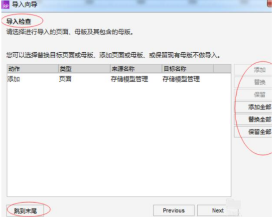 5、检查导入内容,处理页面替换提示,选择替换或保留。
